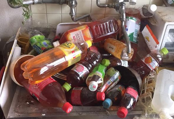 男性のゴミ屋敷ででよく目にする光景が、この写真です。